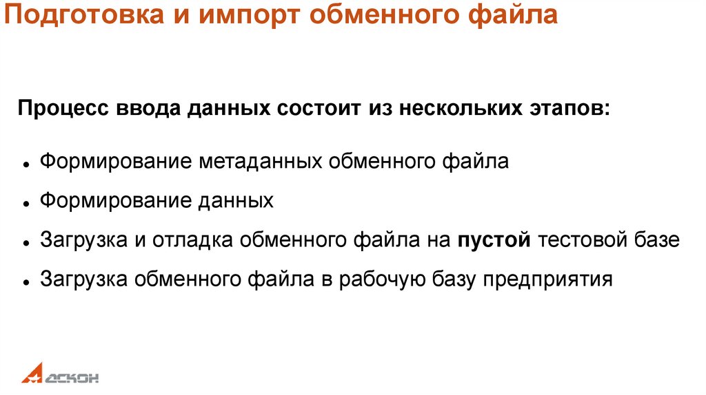 Подготовка и импорт обменного файлаПроцесс ввода данных состоит из нескольких этапов: