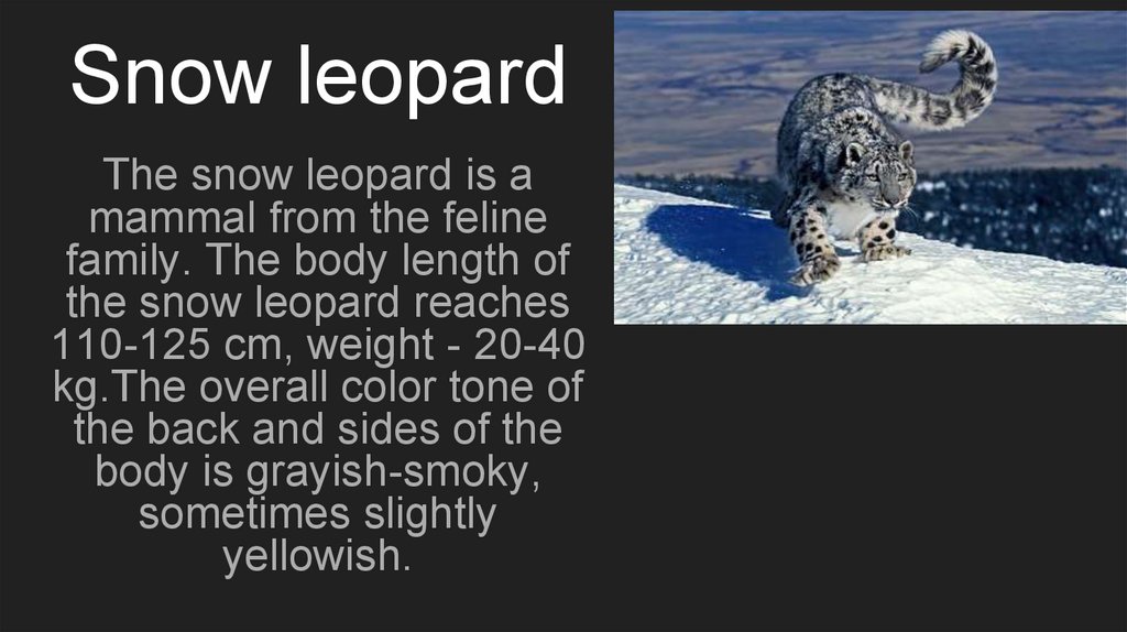 Snow leopardThe snow leopard is a