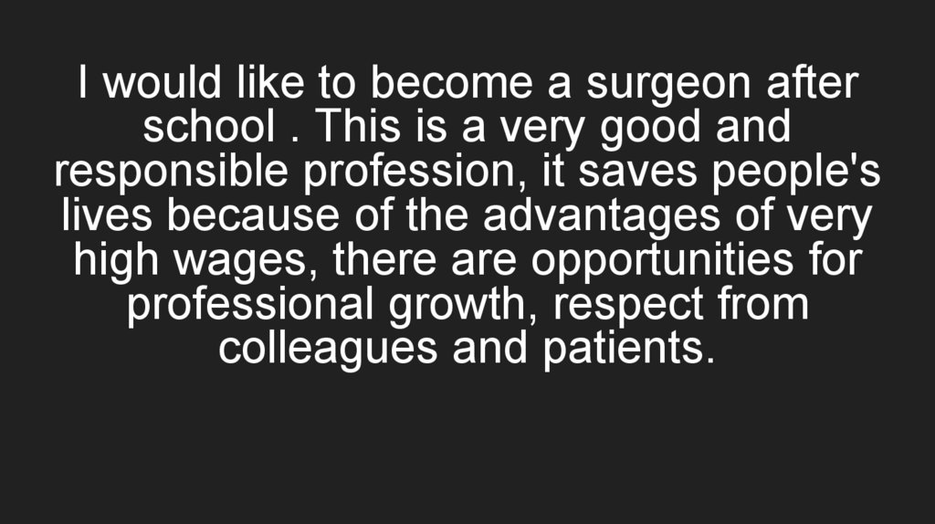 I would like to become a surgeon afterschool . This is a very good and