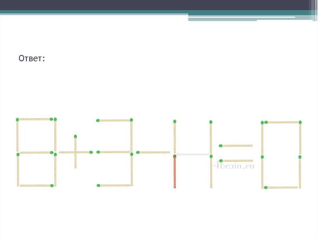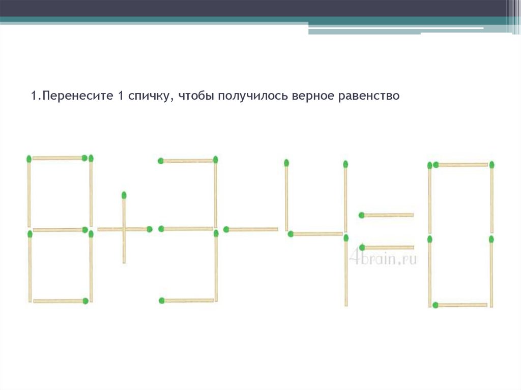 1.Перенесите 1 спичку, чтобы получилось верное равенство3.