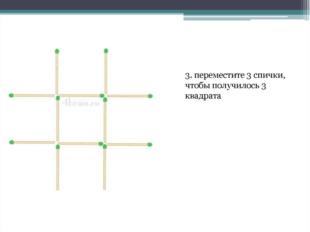 3. переместите 3 спички,чтобы получилось 3