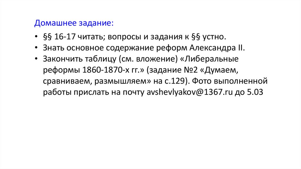 • Знать основное содержание реформ Александра II.