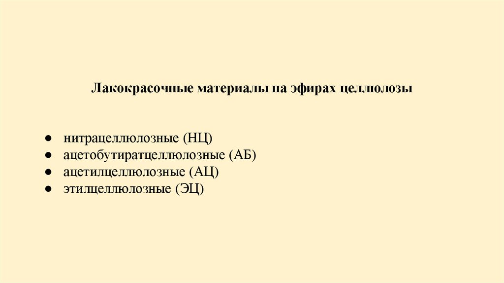 Лакокрасочные материалы на эфирах целлюлозынитрацеллюлозные (НЦ)