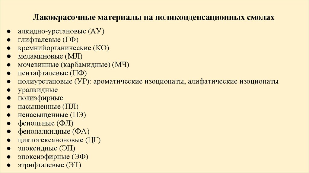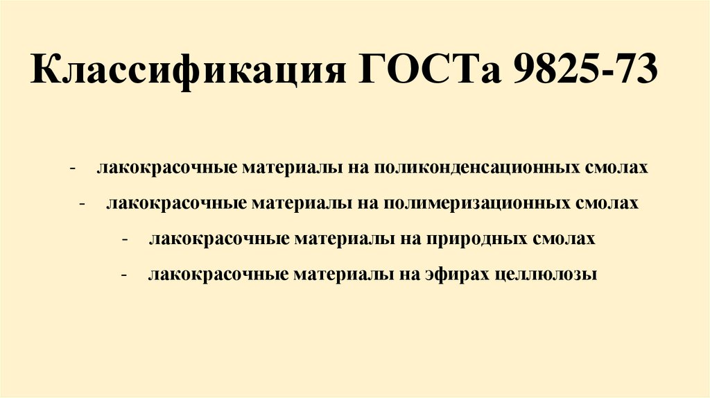 Классификация ГОСТа 9825-73лакокрасочные материалы на поликонденсационных смолах