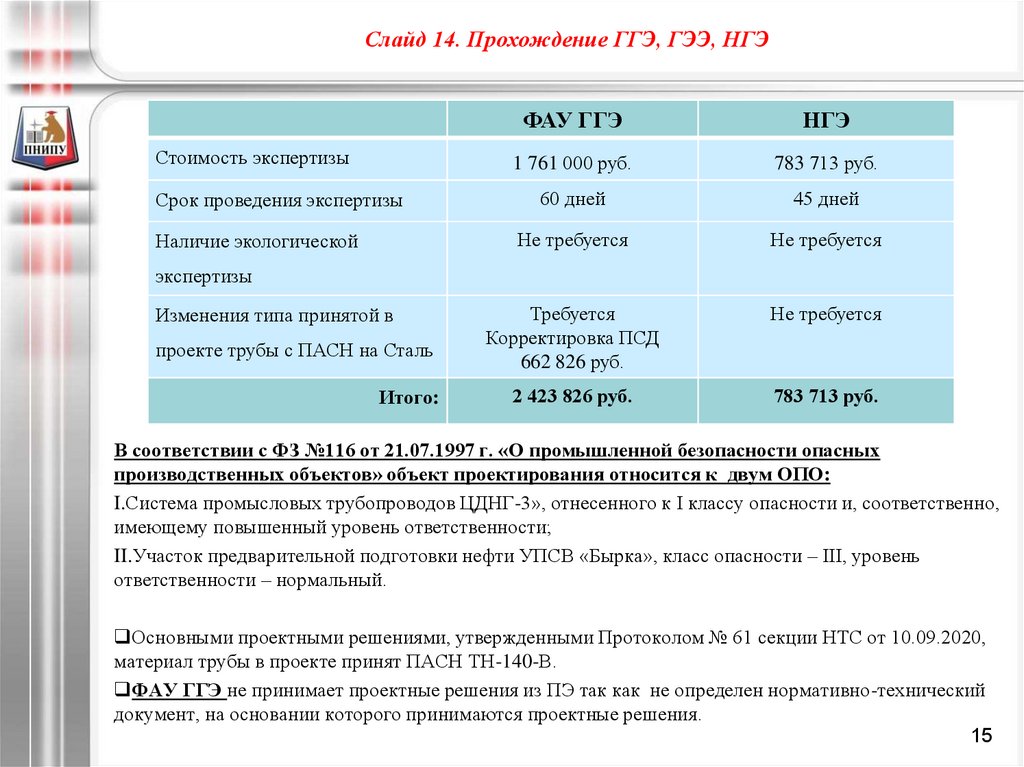 Слайд 14. Прохождение ГГЭ, ГЭЭ, НГЭСтоимость экспертизы