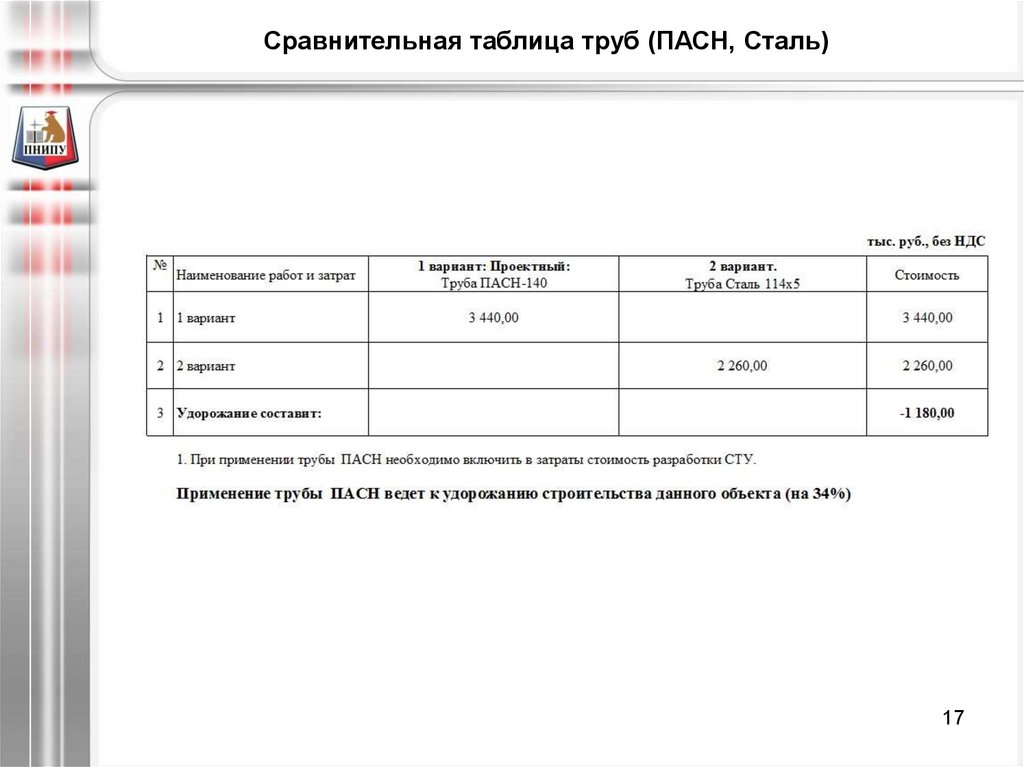 Сравнительная таблица труб (ПАСН, Сталь)17