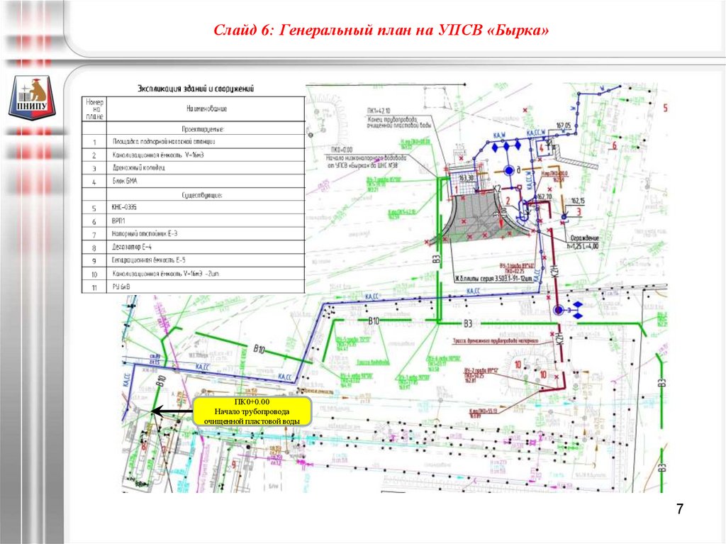 Слайд 7: Генеральный план подпорной насосной станции на УПСВ «Бырка»