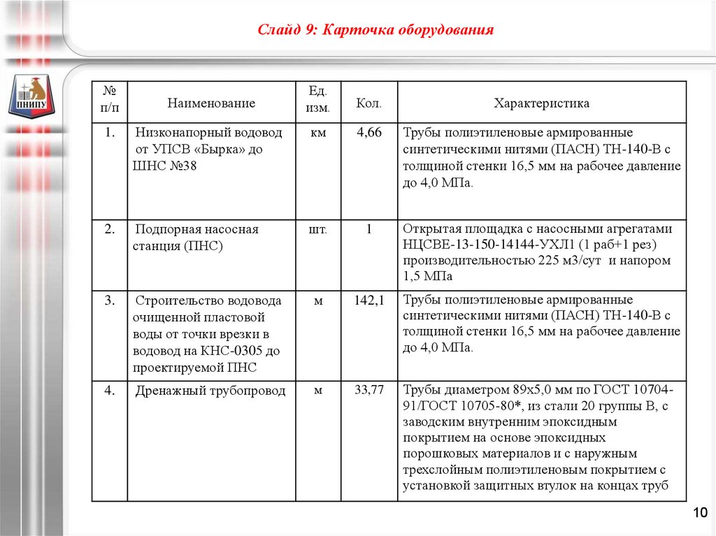 Слайд 9: Карточка оборудования№
