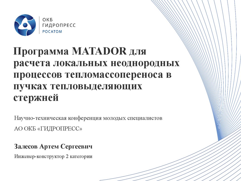 1. Программа MATADOR для расчета локальных неоднородных процессов тепломассопереноса в пучках тепловыделяющих стержней