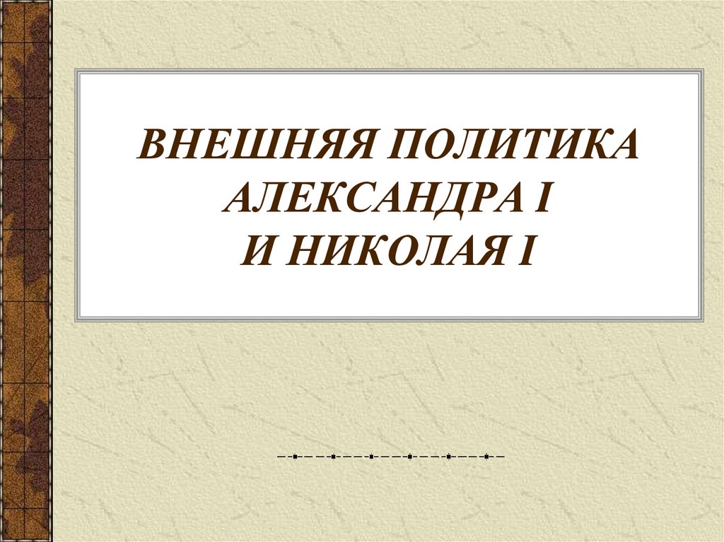 1. ВНЕШНЯЯ ПОЛИТИКА АЛЕКСАНДРА I И НИКОЛАЯ I