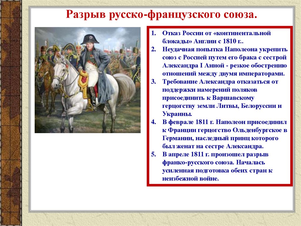 Разрыв русско-французского союза.1. Отказ России от «континентальной