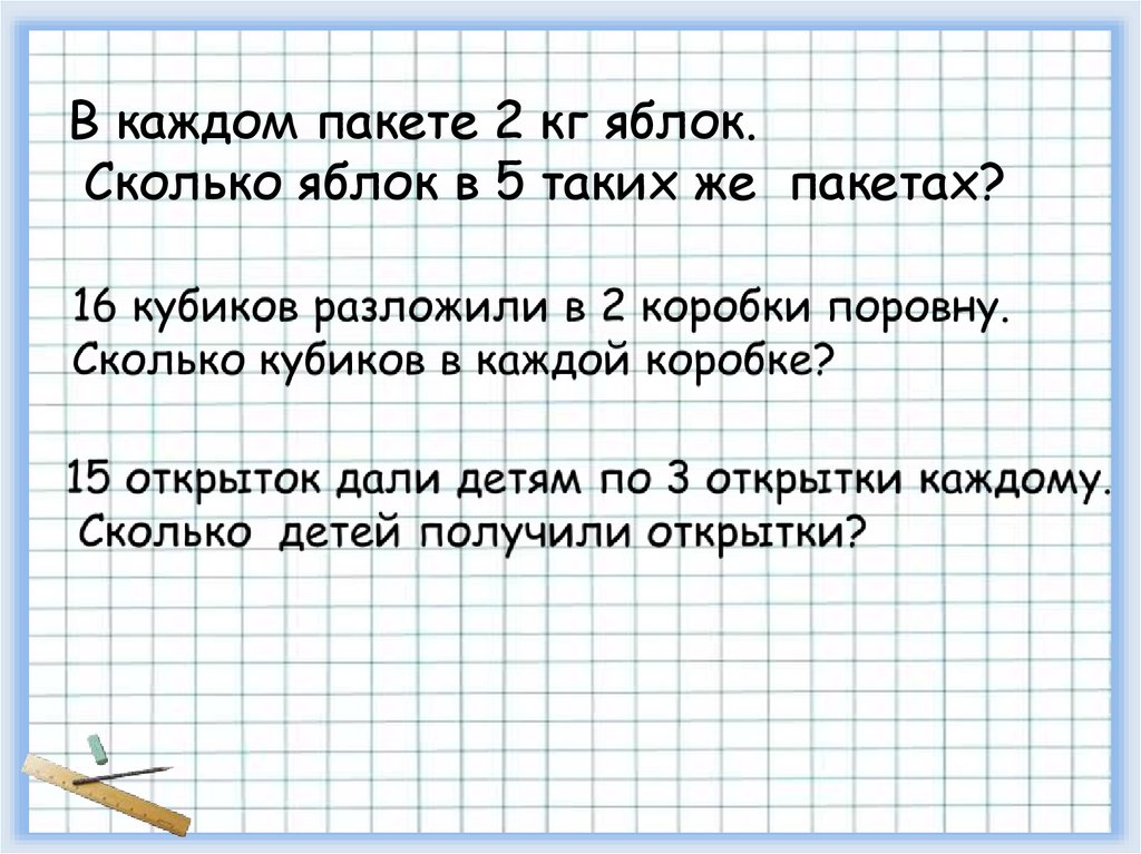 В каждом пакете 2 кг яблок.Сколько яблок в 5 таких же пакетах?
