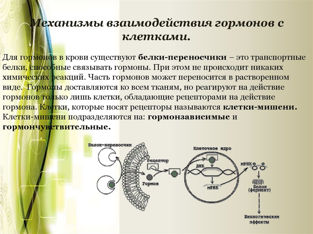 гормона. Клетки, которые носят рецепторы называются клетки-мишени.