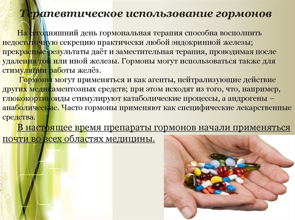 Терапевтическое использование гормоновНа сегодняшний день гормональная терапия способна восполнить