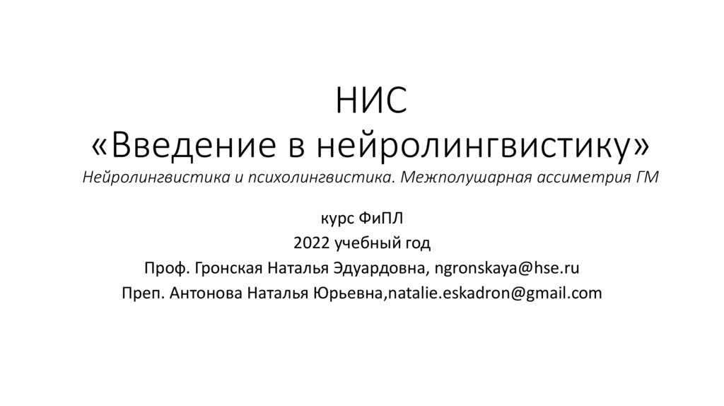 Нейролингвистика и психолингвистика. Межполушарная ассиметрия ГМ