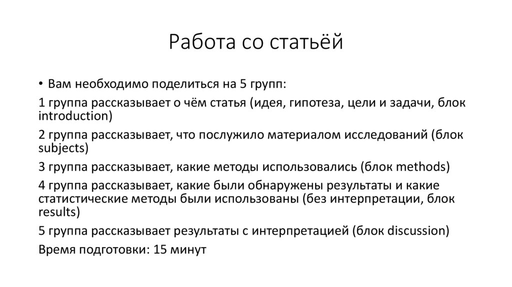 Работа со статьёй• Вам необходимо поделиться на 5 групп: