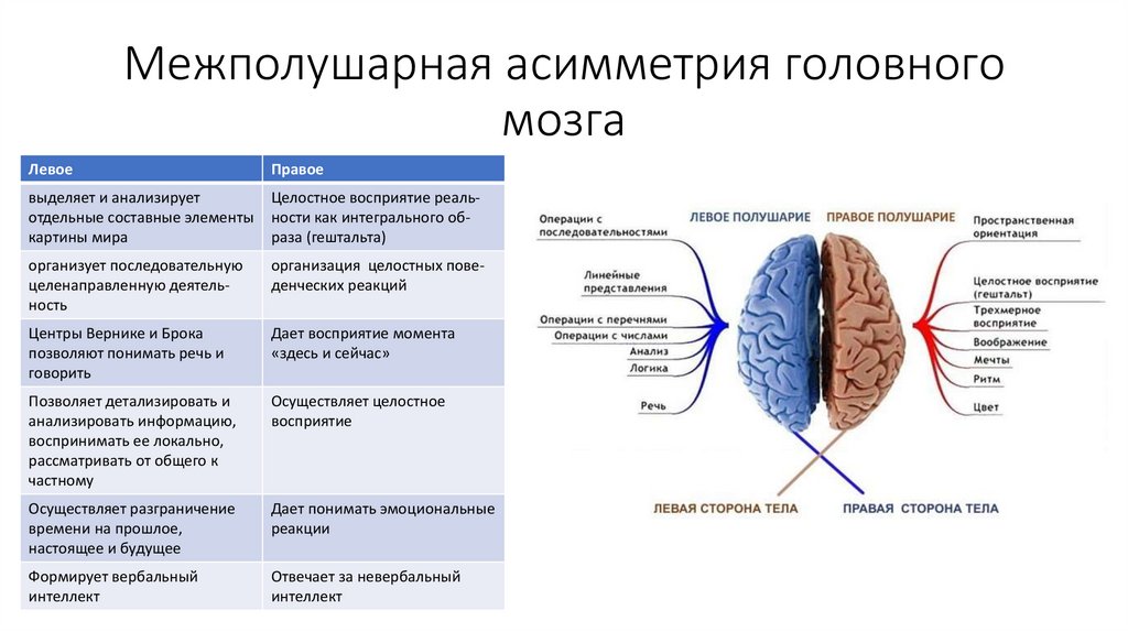 Межполушарная асимметрия головного мозга• Это характеристика распределения психических функций между