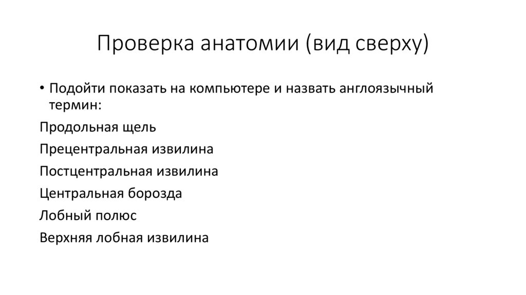 Проверка анатомии (вид сверху)• Подойти показать на компьютере и назвать англоязычный