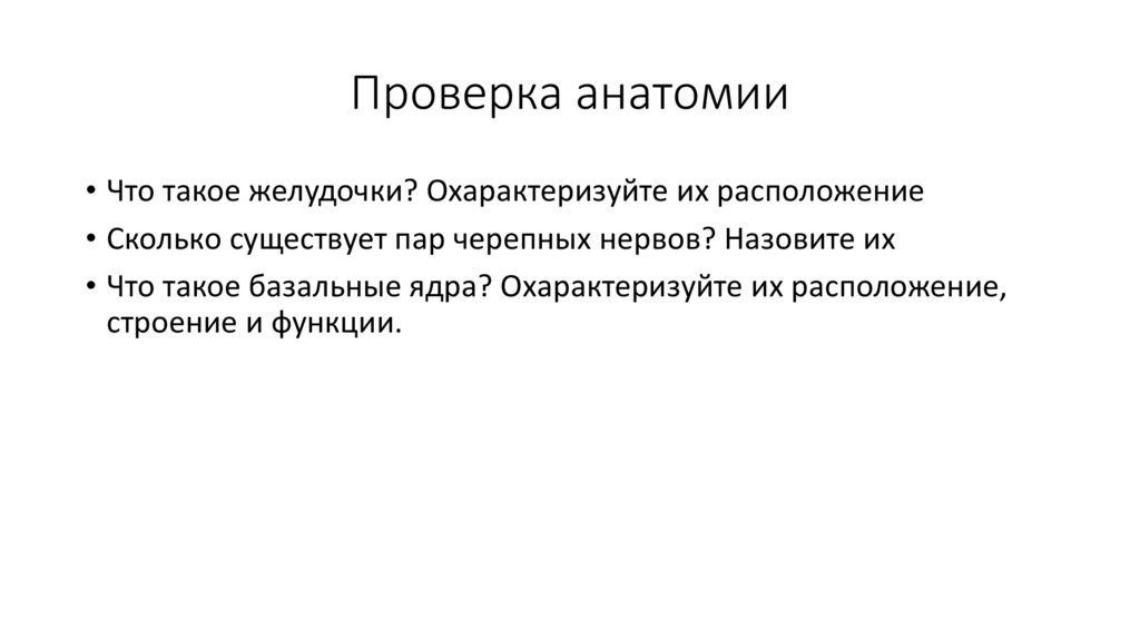 Проверка анатомии• Что такое желудочки? Охарактеризуйте их расположение