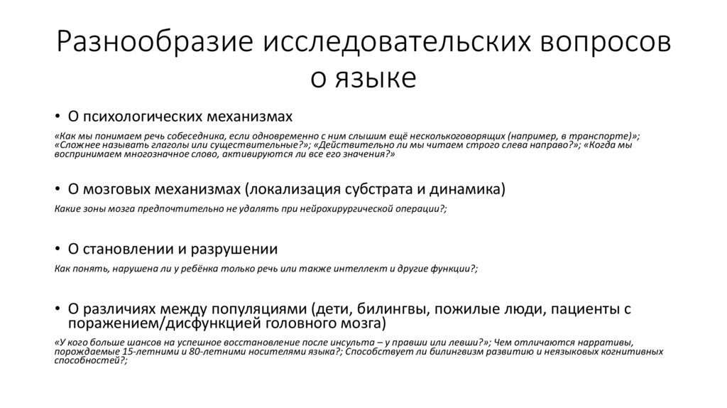 порождаемые 15-летними и 80-летними носителями языка?; Способствует ли билингвизм развитию и неязыковых когнитивных