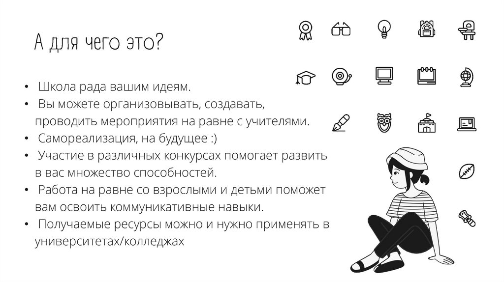 • Школа рада вашим идеям.• Вы можете организовывать, создавать,