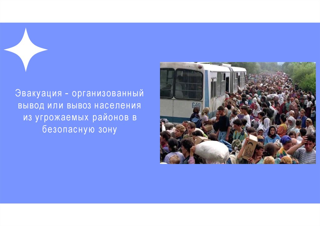 В целях проведения эвакуации вк о р о тк ие сроки, часть населения
