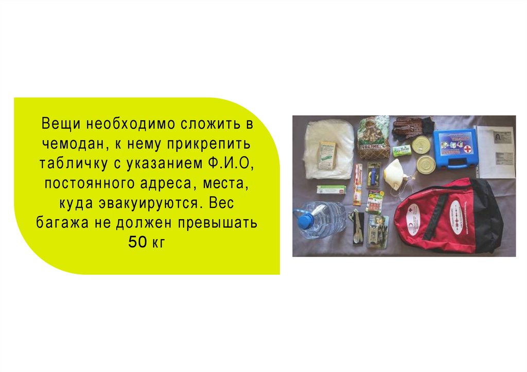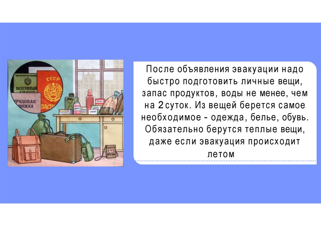 По с л е объявления эвакуации на д обыстро подготовить личные вещи,