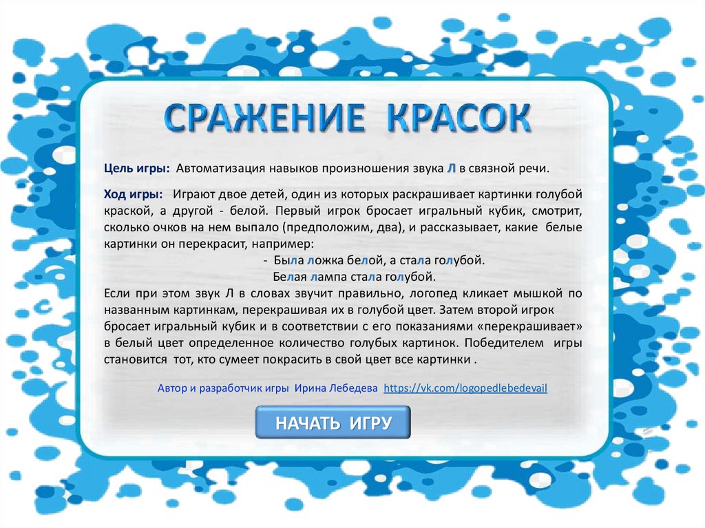 Автор и разработчик игры Ирина Лебедева https://vk.com/logopedlebedevail
