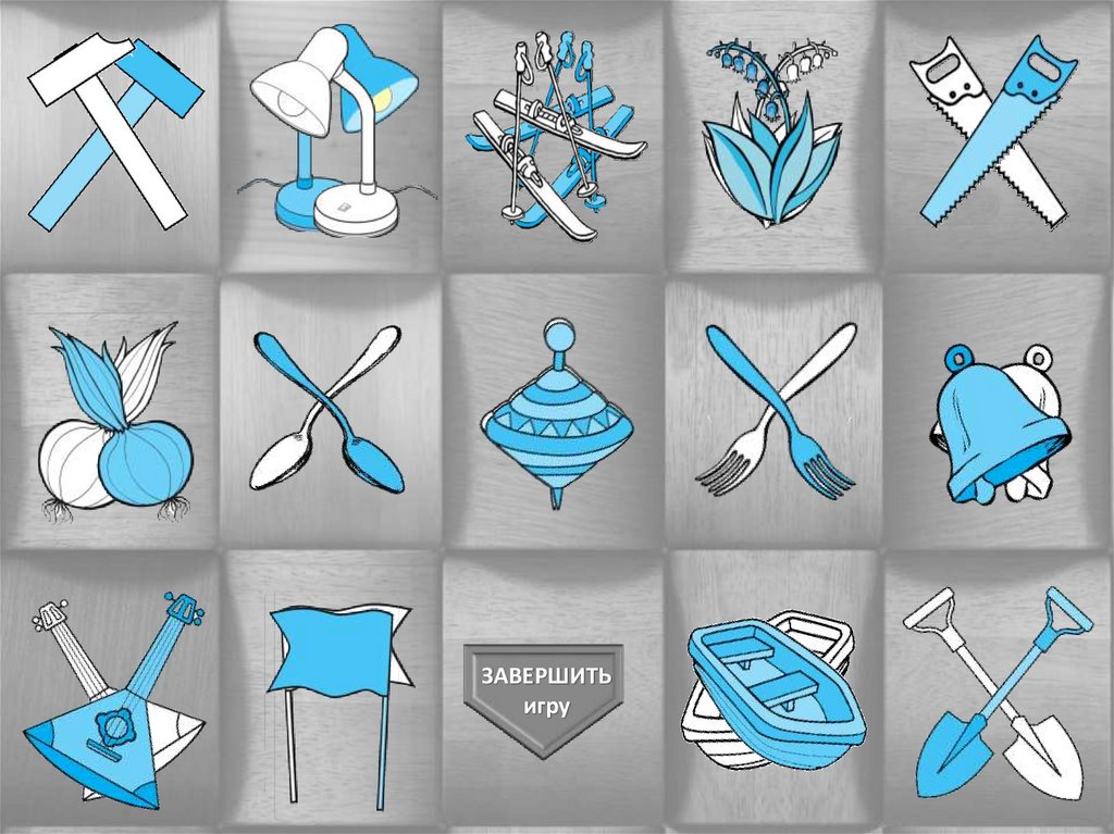 названным картинкам, перекрашивая их в голубой цвет. Затем второй игрок
