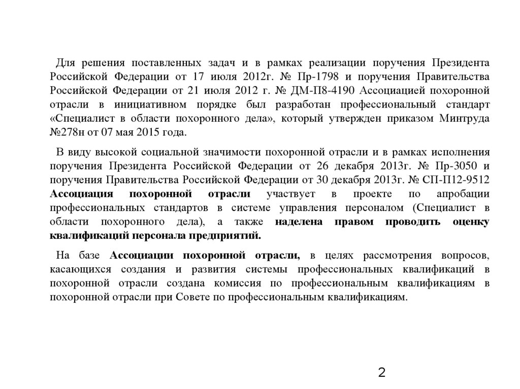 Российской Федерации от 21 июля 2012 г. № ДМ-П8-4190 Ассоциацией похоронной