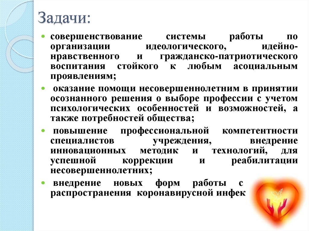 Цель работы – оказание экстренной помощинесовершеннолетним детям, оказавшимся в