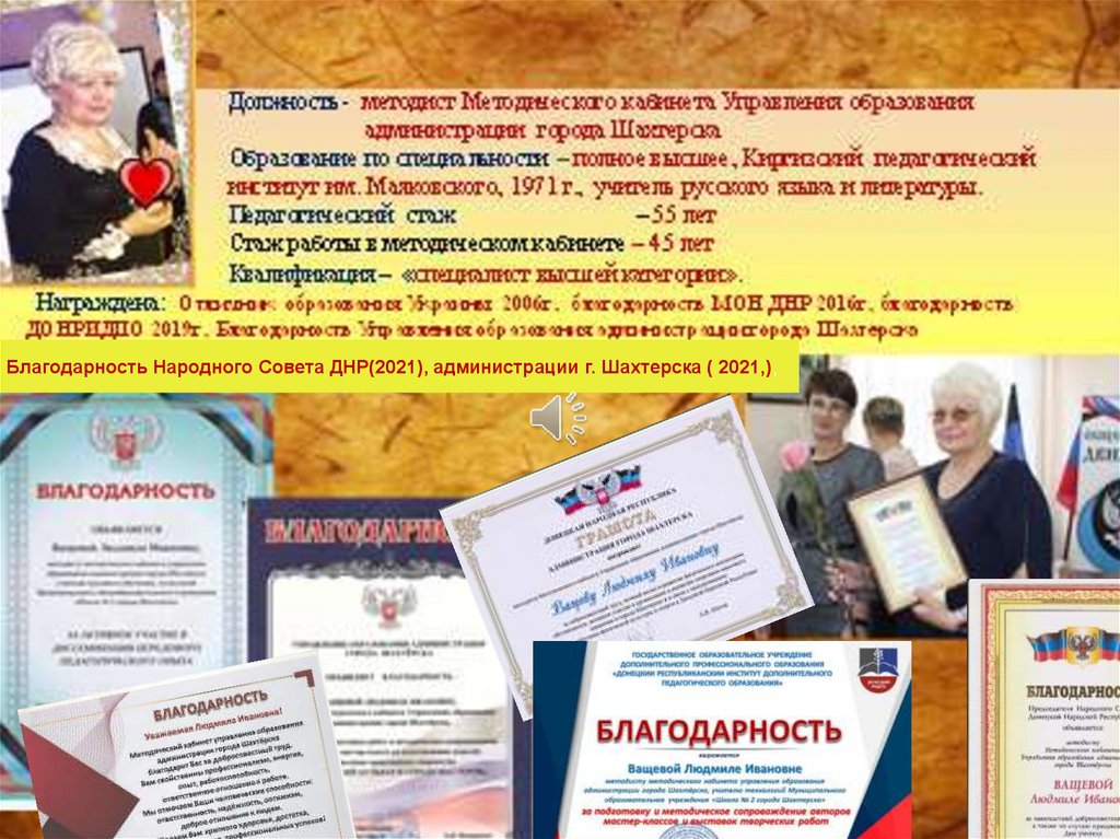 Благодарность Народного Совета ДНР(2021), администрации г. Шахтерска ( 2021,),4.