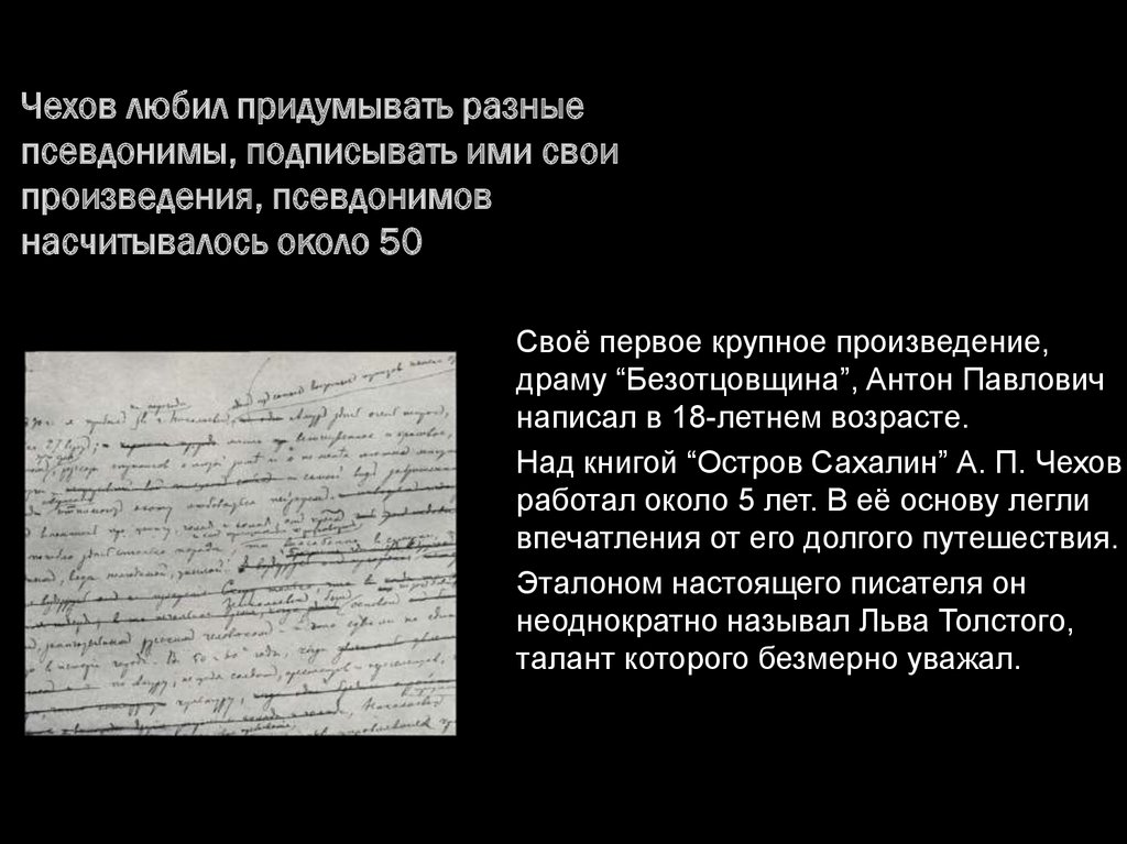 Чехов любил придумывать разныепсевдонимы, подписывать ими свои