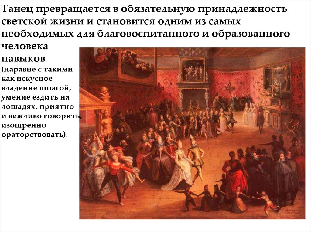Танец превращается в обязательную принадлежностьсветской жизни и становится одним из самых