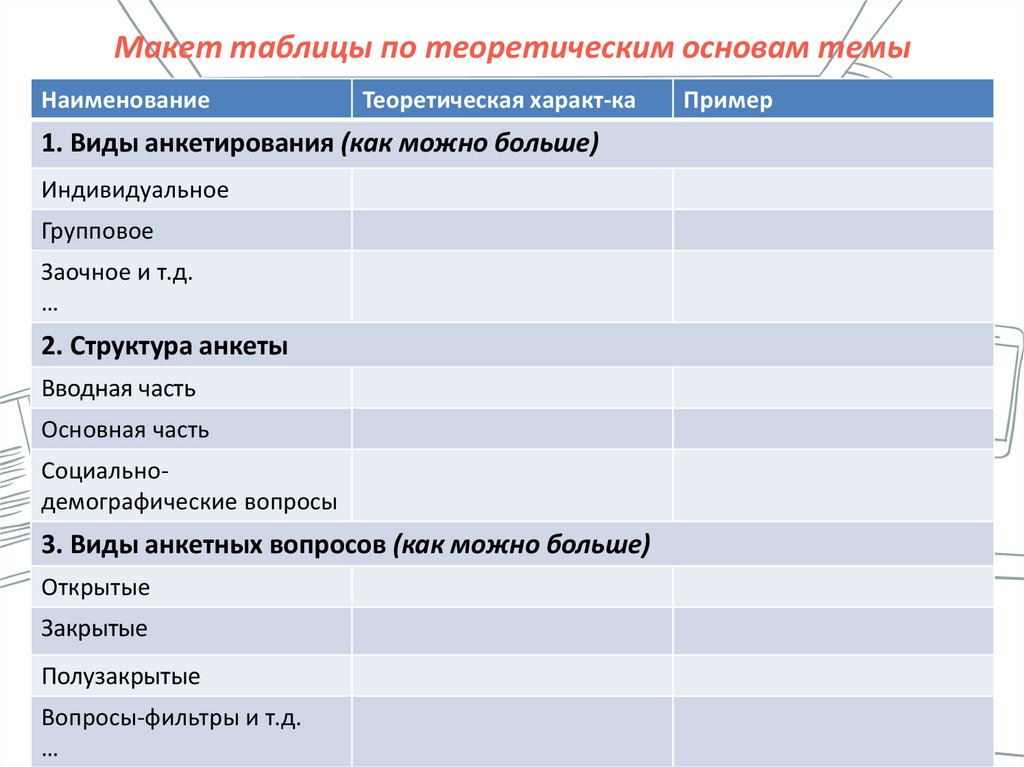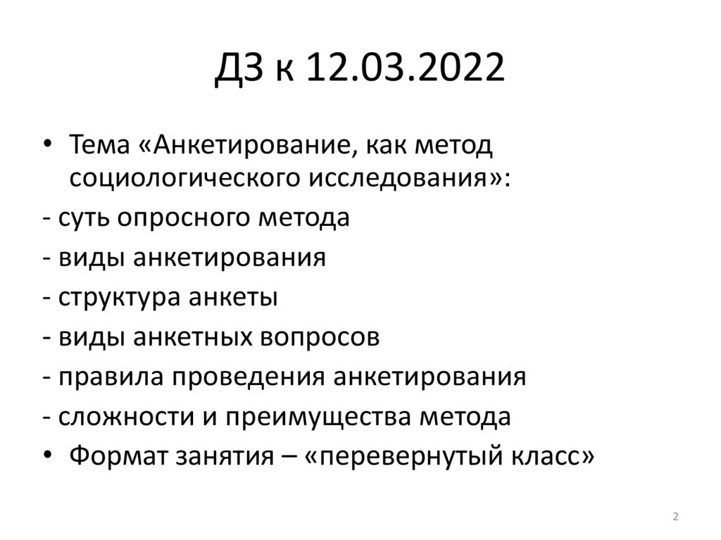 ДЗ к 12.03.2022• Тема «Анкетирование, как метод