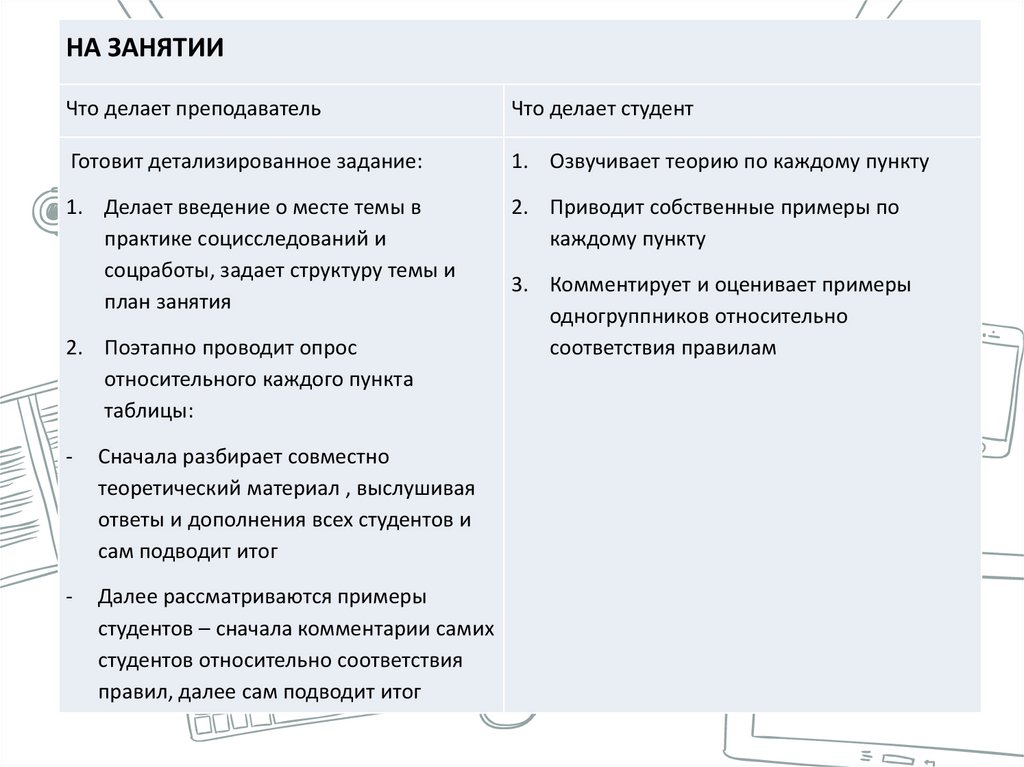 НА ЗАНЯТИИЧто делает преподаватель