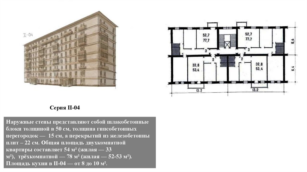 Серия II-04Наружные стены представляют собой шлакобетонные