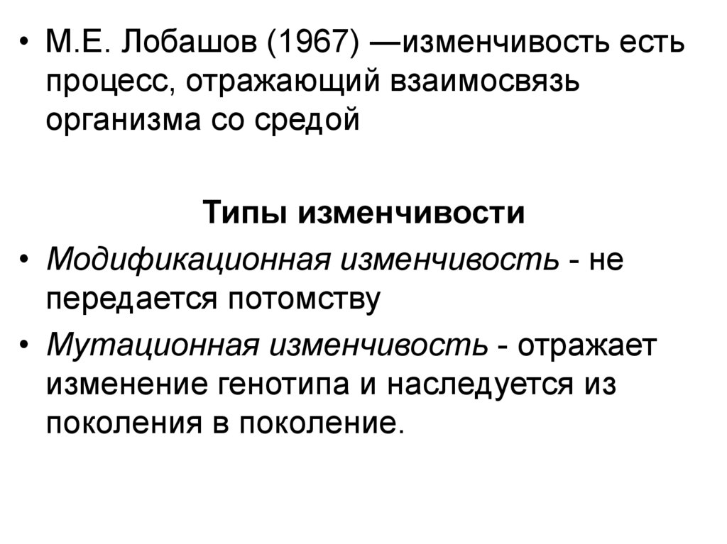 • М.Е. Лобашов (1967) ―изменчивость естьпроцесс, отражающий взаимосвязь