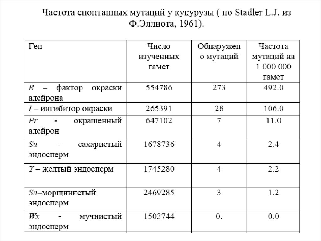 – у ячменя с частотой 1:10000 возникают мутанты-альбиносы, у