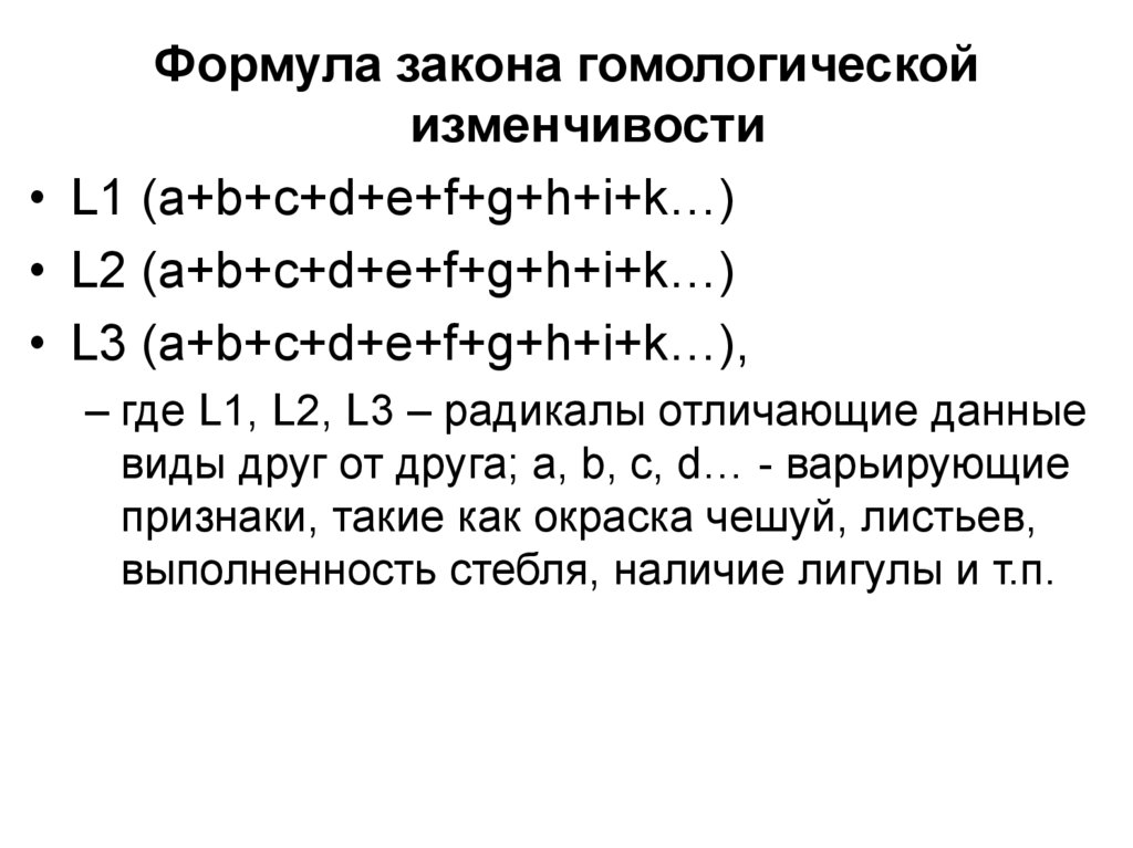 Формула закона гомологическойизменчивости