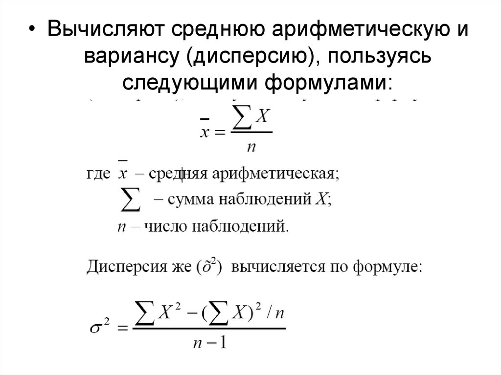• Вычисляют среднюю арифметическую ивариансу (дисперсию), пользуясь