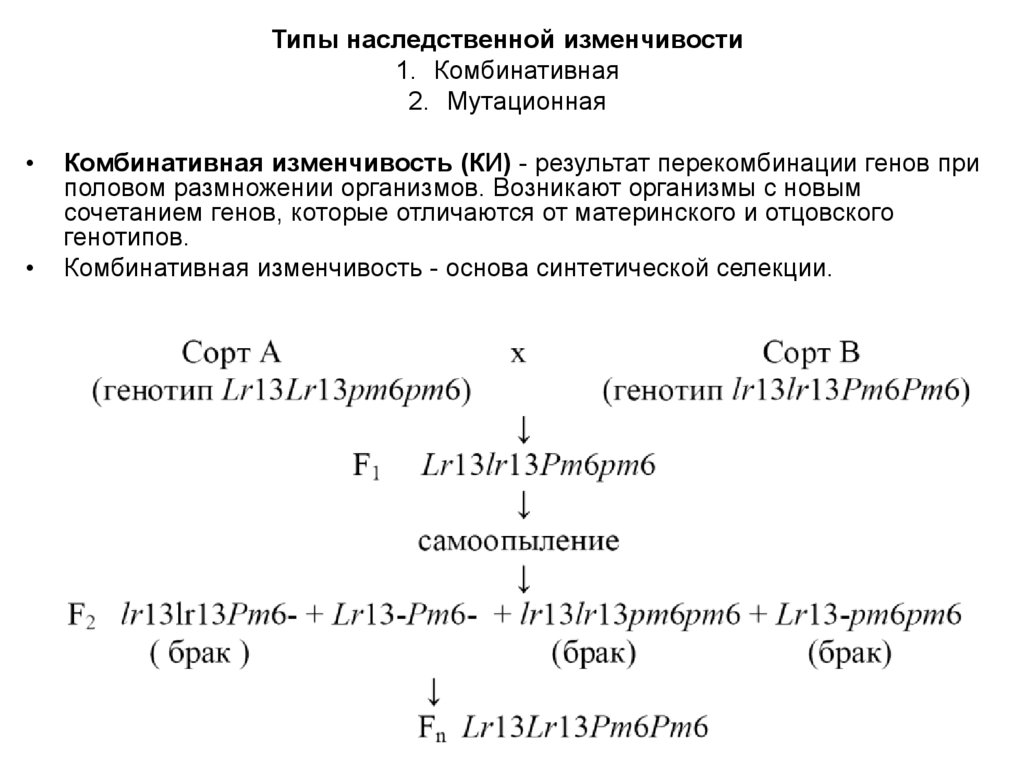Типы наследственной изменчивости1. Комбинативная