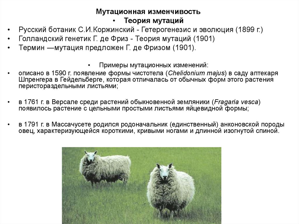 Термин ―мутация предложен Г. де Фризом (1901).