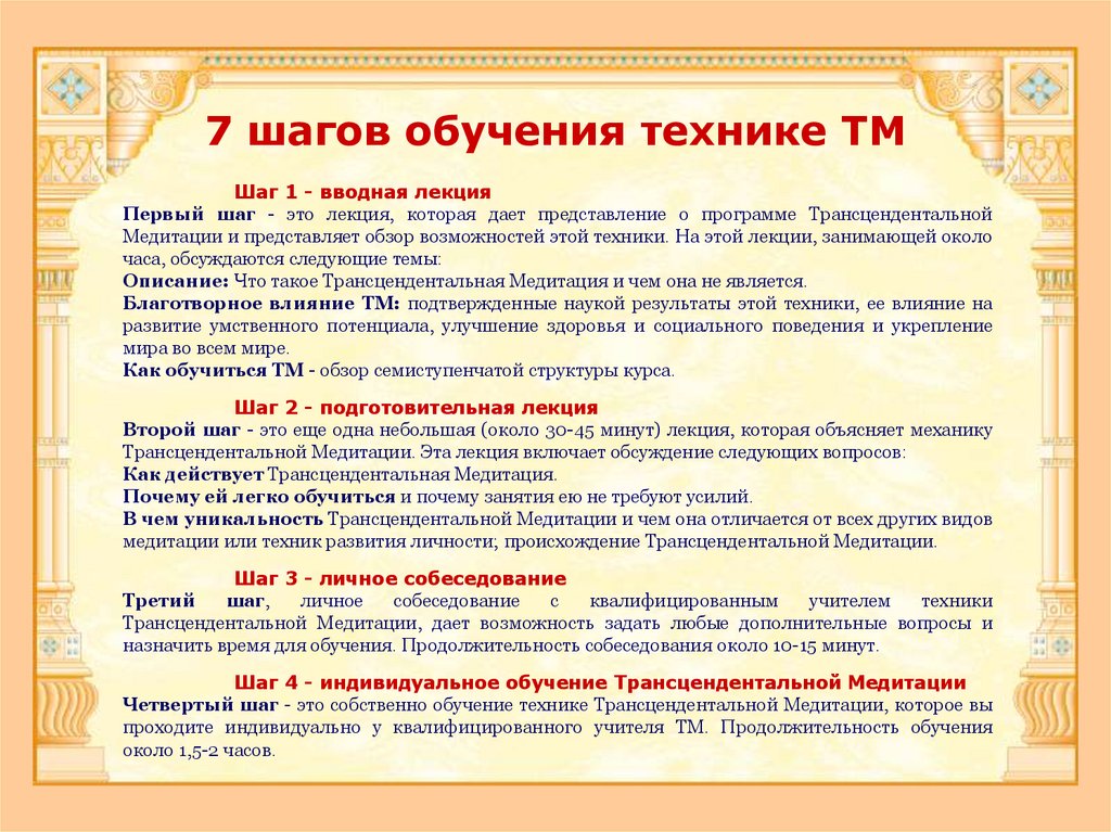 медитирующие продолжали правильно заниматься ТМ и получать от этого максимальную пользу. Вы можете