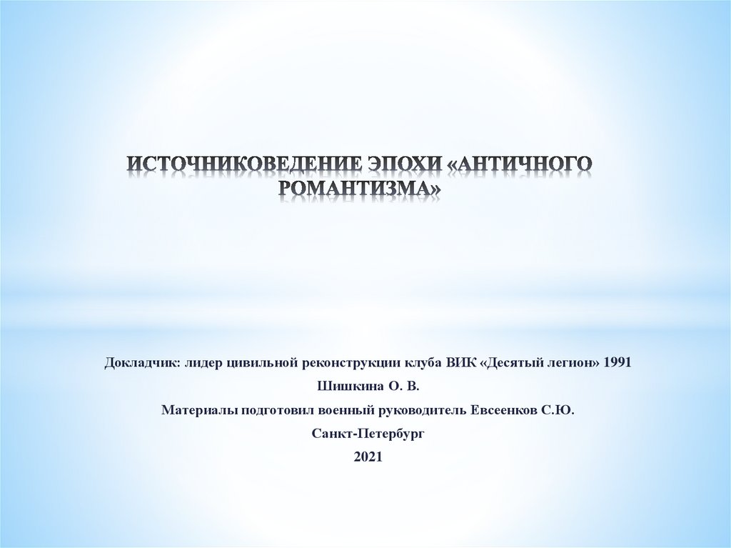 Источниковедение эпохи "Античного романтизма"