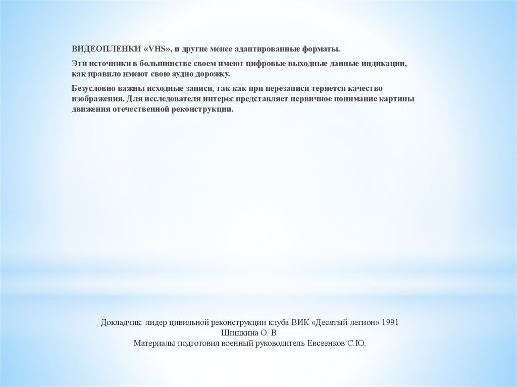 ВИДЕОПЛЕНКИ «VHS», и другие менее адаптированные форматы.Эти источники в большинстве своем имеют цифровые выходные данные индикации,