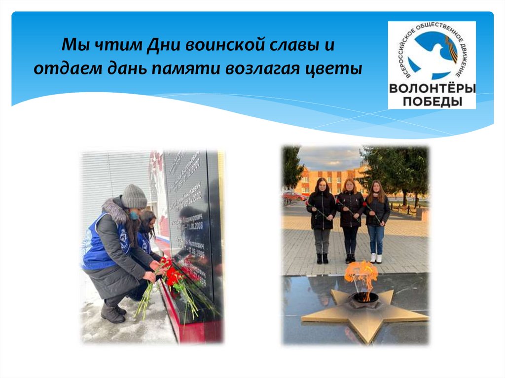 Мы чтим Дни воинской славы иотдаем дань памяти возлагая цветы