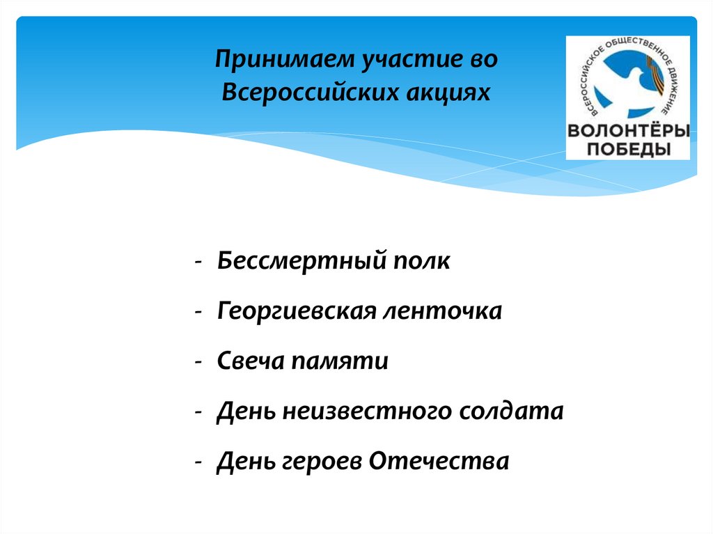 Принимаем участие воВсероссийских акциях