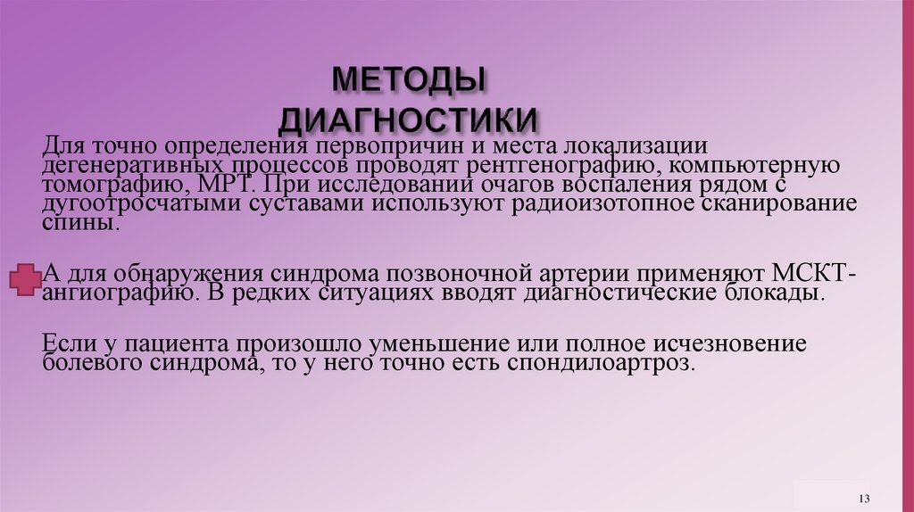 Для точно определения первопричин и места локализациидегенеративных процессов проводят рентгенографию, компьютерную