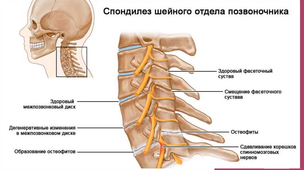 Шейный спондилоартрозЭтот тип поражает маленькие подвижные суставы шеи. Он возникает в